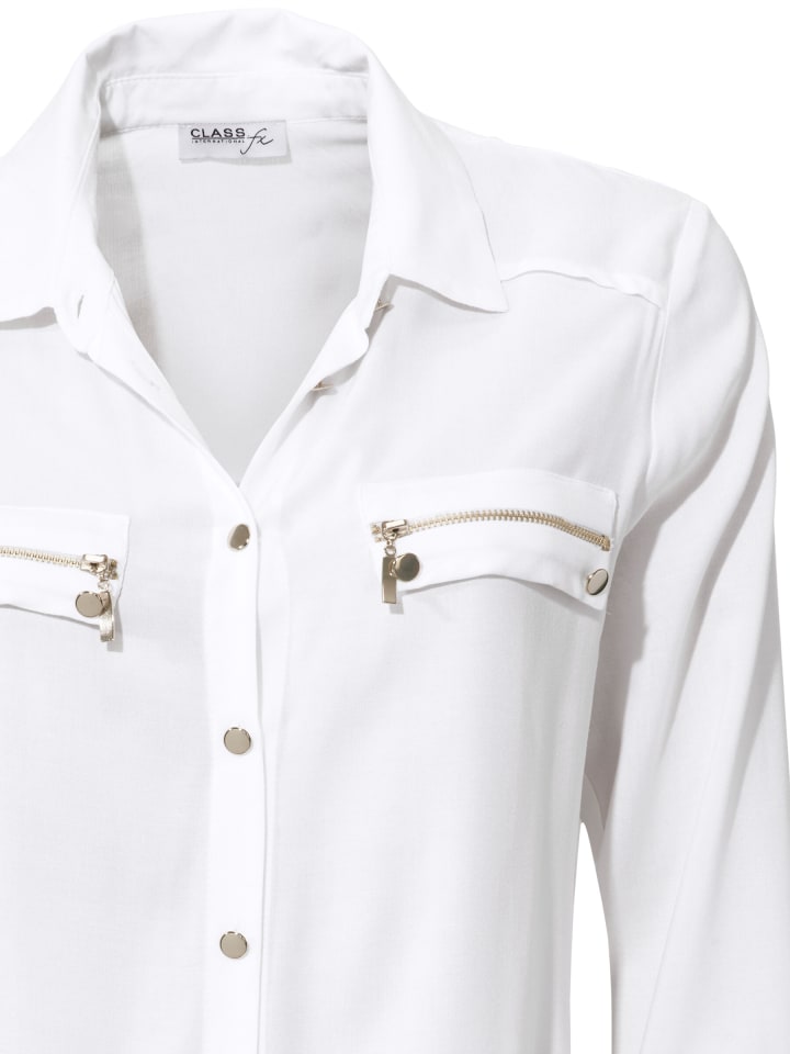 Блузка-рубашка в модном стиле из приятного материала. Облегающий фасон с длинными рукавами, которые можно подвернуть.