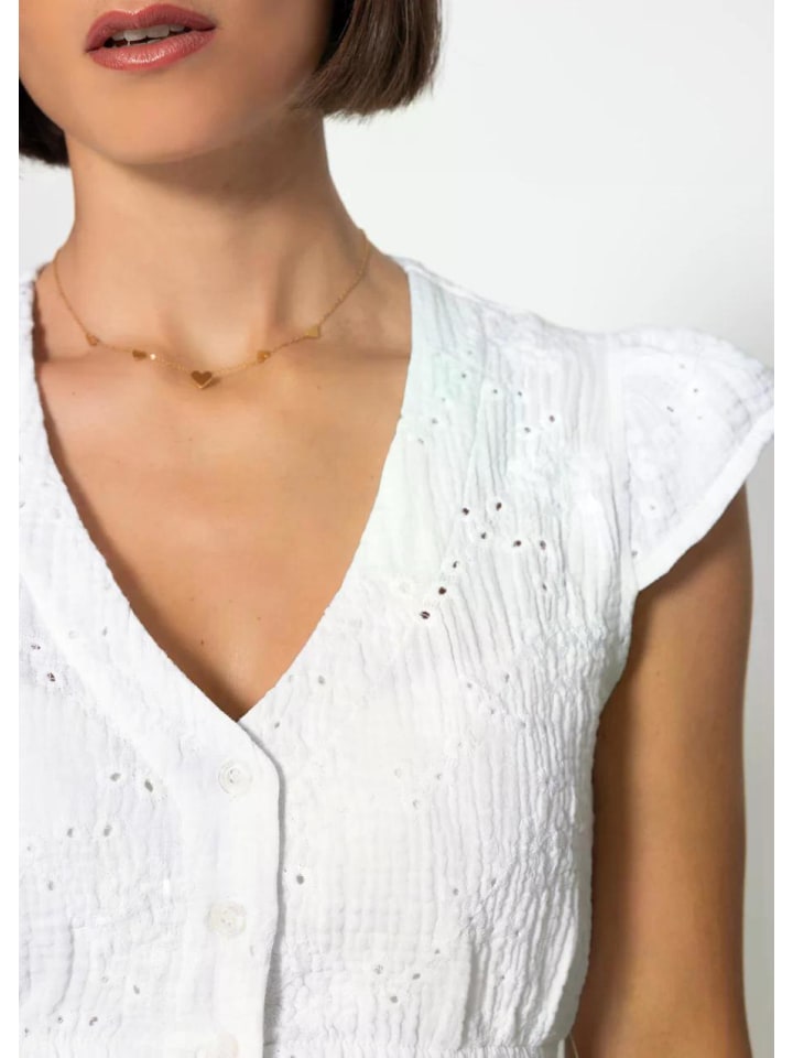 - ДЕТАЛИ: Планка с пуговицами спереди с изящными пуговицами, воздушная вышивка и мягкий эффект жатости создают легкий летний образ.