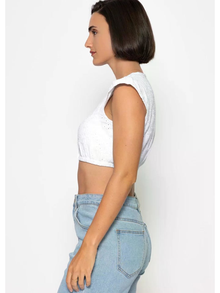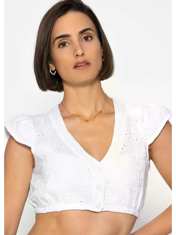 Эта блузка в стиле дирндль впечатляет своим игривым дизайном, характеризующимся изящной ажурной вышивкой и легким муслиновым эффектом. Женственный V-образный вырез и короткие рукава-крылышки добавляют изящные акценты и подчеркивают летнюю легкость. Короткий силуэт, обнажающий живот, дополняется эластичным подолом, который обеспечивает надежную посадку и выгодно подчеркивает талию. Блузка застегивается спереди на планку с пуговицами и изящными пуговицами, а мягкая жатая текстура добавляет ткани еще больше очарования. Сочетание фактуры и прозрачности создает ощущение легкости и свежести. Независимо от того, носите ли вы ее традиционно с дирндлем, стильно с юбкой или в современном стиле с джинсами с высокой талией, эта блузка предлагает универсальные варианты стилизации и подойдет как для праздничных случаев, так и для непринужденных повседневных образов.