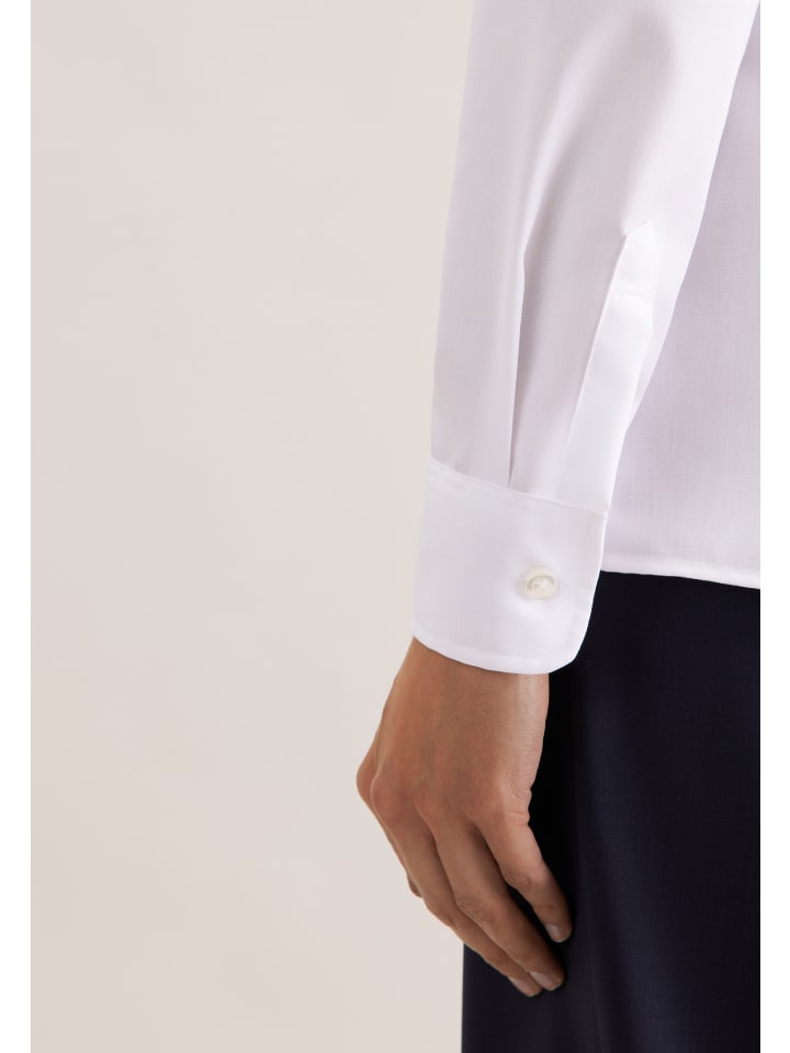 Женственность и элегантность: создайте стильный образ с этой блузкой-рубашкой от Seidensticker. Поплин соткан с высокой плотностью, что делает его чрезвычайно прочным. В сочетании со 100% хлопком он идеально подходит для деловых образов, не требующих сложного ухода. Приталенный крой этой блузки-рубашки прекрасно облегает фигуру. Эта модель вне времени, воплощающая не только чувство стиля, но и женскую уверенность в себе. Эта блузка-рубашка с длинными рукавами особенно подчеркивает стиль и элегантность. Воротник рубашки подчеркивает женственный, классический характер.