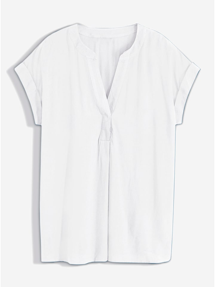 Незаменимая вещь, продуманная до мелочей: мягкая, эластичная вискозная блузка свободного кроя, которую легко надевать. Круглый вырез горловины дополнен планкой, открытым V-образным вырезом и короткой планкой с пуговицами. Модно спущенные плечи и приталенные манжеты на рукавах завершают образ. Складка спереди обеспечивает свободный крой. Изготовлена из вискозы ECOVERO производства Lenzing.