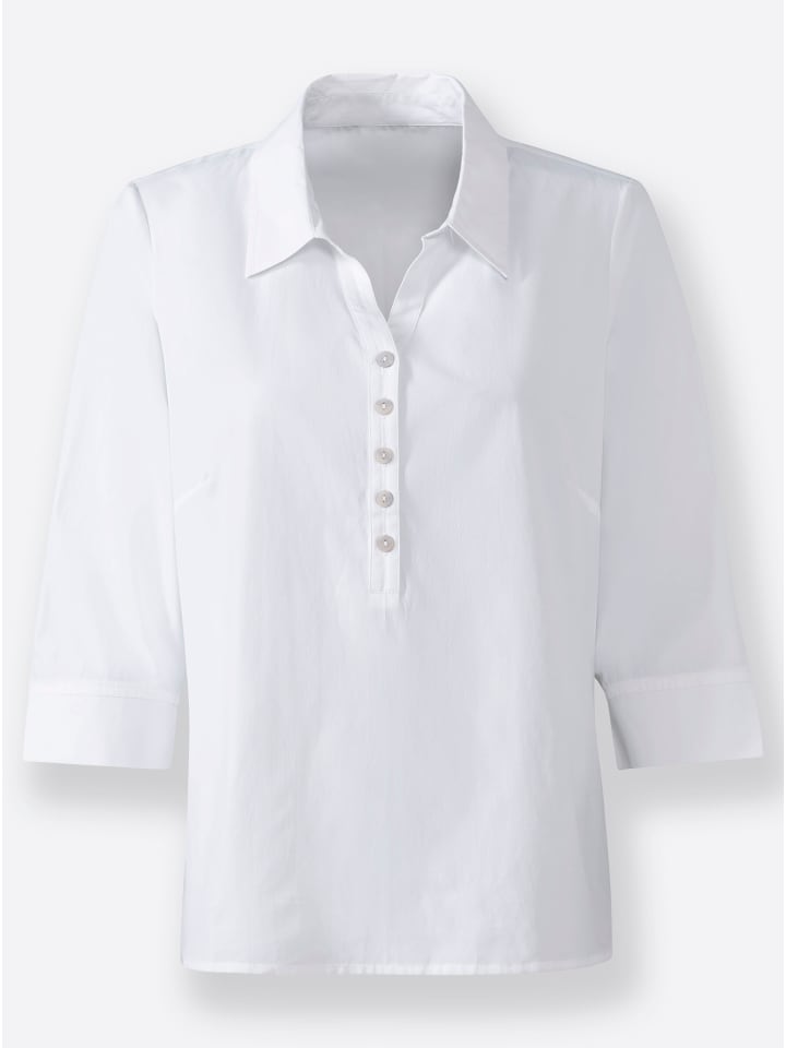 Эта блузка найдет свое место в любом гардеробе: она универсальна, проста в уходе и невероятно проста благодаря отделке Easy Care. Имеет открытый воротник, планку с пуговицами до талии с мерцающими перламутровыми пуговицами и вытачки на груди. Рукава три четверти с манжетами и небольшим разрезом. Мягкая смесовая ткань. Покупая блузку, вы поддерживаете инициативу «Хлопок, сделанный в Африке».