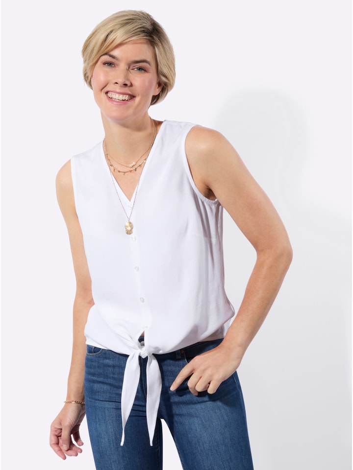 Весенний фаворит: блузка с завязанным низом. Имитация планки с пуговицами. Приятная для кожи и дышащая, изготовлена из чистой вискозы (ECOVERO). Ткань с легкой текстурой.