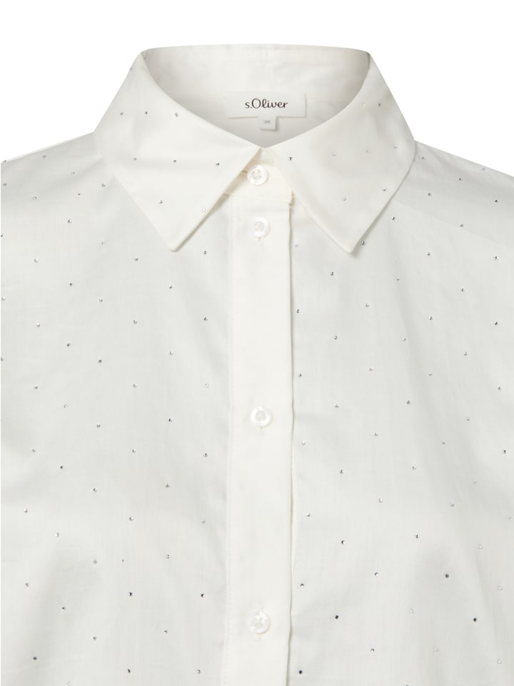 Эту блузку-рубашку s.Oliver украшают сверкающие стразы, придавая ей гламурный вид. Завязка на подоле позволяет создавать различные варианты укладки.