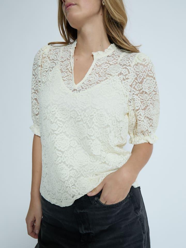 Украсьте свой гардероб кружевной блузкой PCKaroline от Peppercorn, в которой нежное кружево сочетается с вневременной элегантностью. Эта блузка имеет замысловатый вырез, который притягивает взгляд и добавляет нотку изысканности любому образу. Красиво текстурированные рукава создают мягкий объем, а очаровательные присборенные манжеты добавляют игривую, но элегантную деталь. Тщательно изготовленная роскошная ткань балует вас комфортом и стилем, а подкладка добавляет дополнительный слой изысканности. Легко сочетайте ее с брюками строгого кроя для создания элегантного офисного образа или с любимыми джинсами для непринужденного и повседневного выхода.