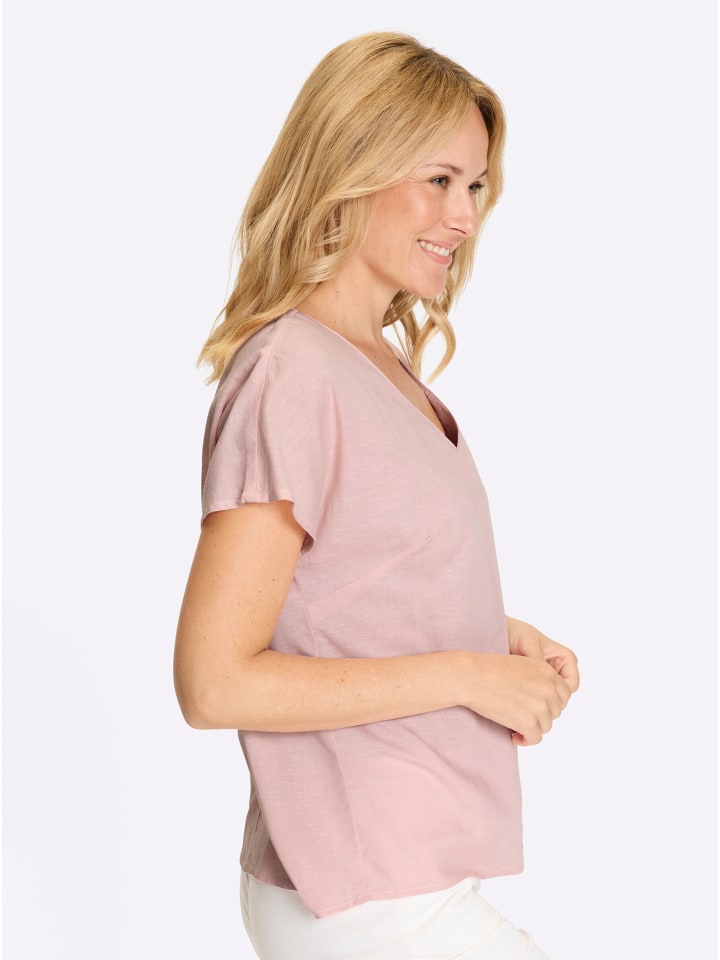 Эта воздушная, легкая блузка из смеси вискозы и льна быстро станет вашей новой любимицей! Складка под V-образным вырезом, спущенная линия плеча и корректирующие вытачки на груди.