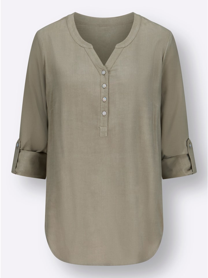 Изготовлено из чистой, мягкой, струящейся вискозы качества EcoVero от Lenzing: длинная блузка с круглым вырезом, переходящим в небольшой V-образный вырез, и короткой планкой с декоративными пуговицами. Продуманная складка на спине создает привлекательный, струящийся силуэт. Длинные рукава с застегивающимися манжетами и разрезами можно закатать до длины три четверти благодаря хлястику и пуговице. Имеет закругленный нижний край и боковые разрезы.