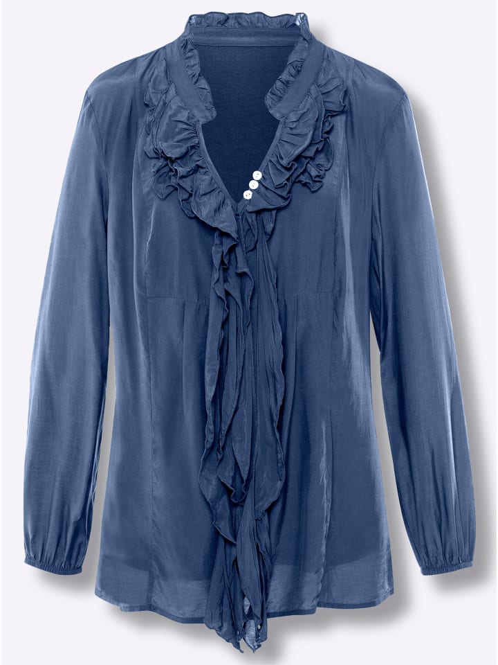Блузка с рюшами из денима синего цвета Heine