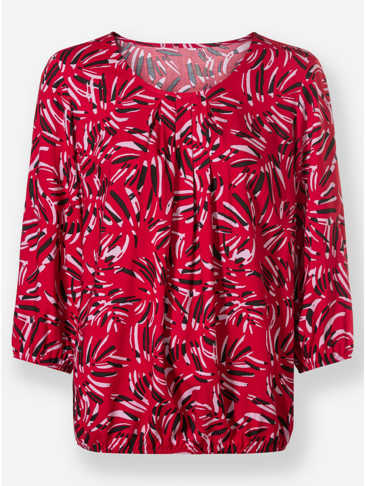 Удивительно удобная блузка с привлекательным принтом. Круглый вырез горловины со складками. Эластичные манжеты на рукавах 3/4 и подоле. Вискоза качества ECOVERO от Lenzing.