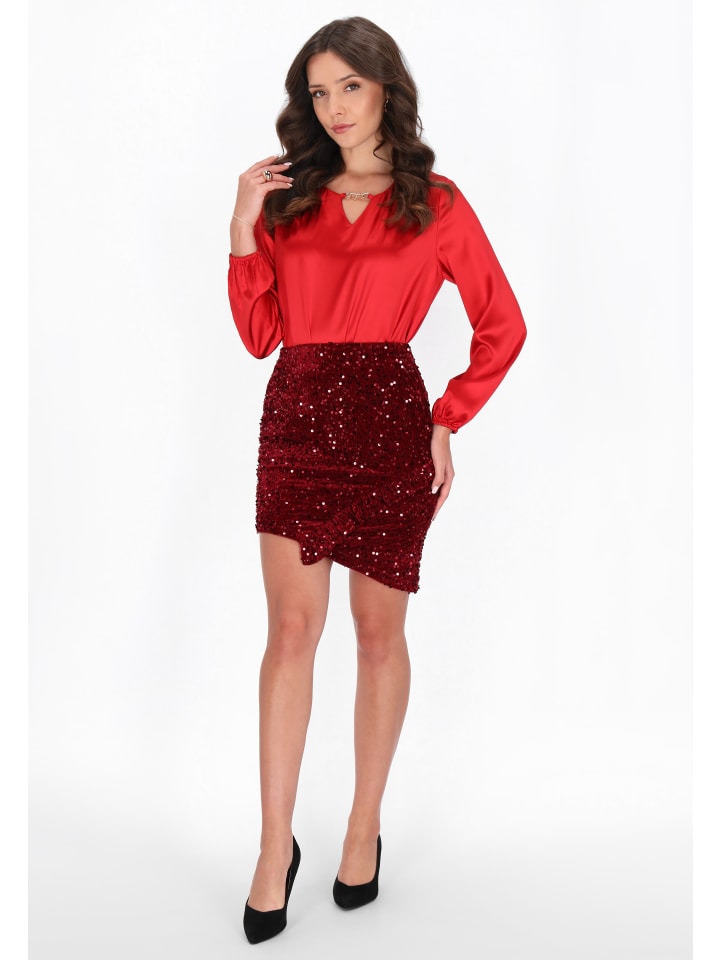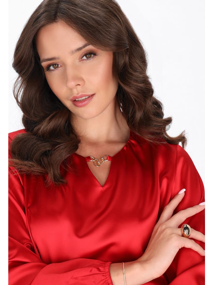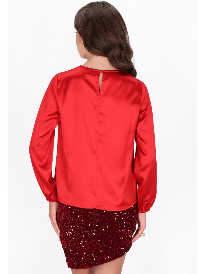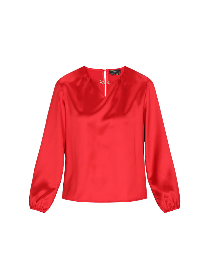 - Блузка свободного кроя с вырезом-замочной скважиной и длинными рукавами-бишоп