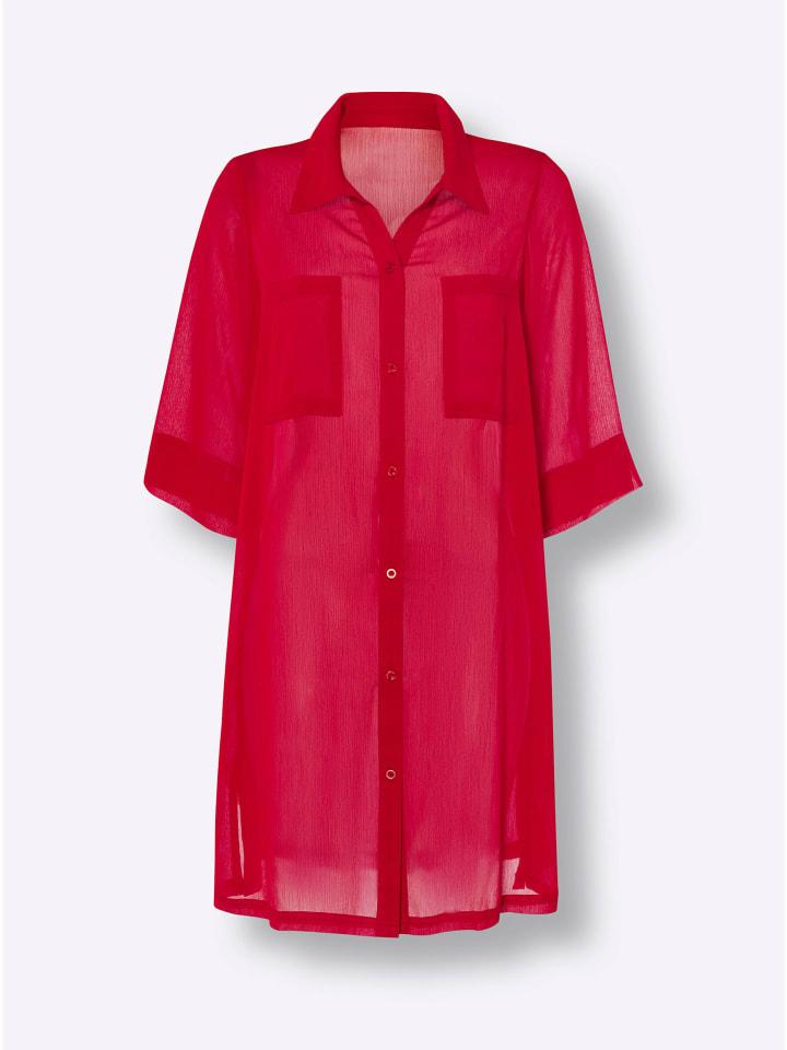 Эта пляжная блузка мгновенно сделает вас стильной. Она застегивается на пуговицы по всей длине, имеет два больших накладных нагрудных кармана и рукава длиной три четверти с небольшими разрезами. Удобные боковые разрезы дополняют образ. Изготовлена из очень легкой в уходе, воздушной ткани.