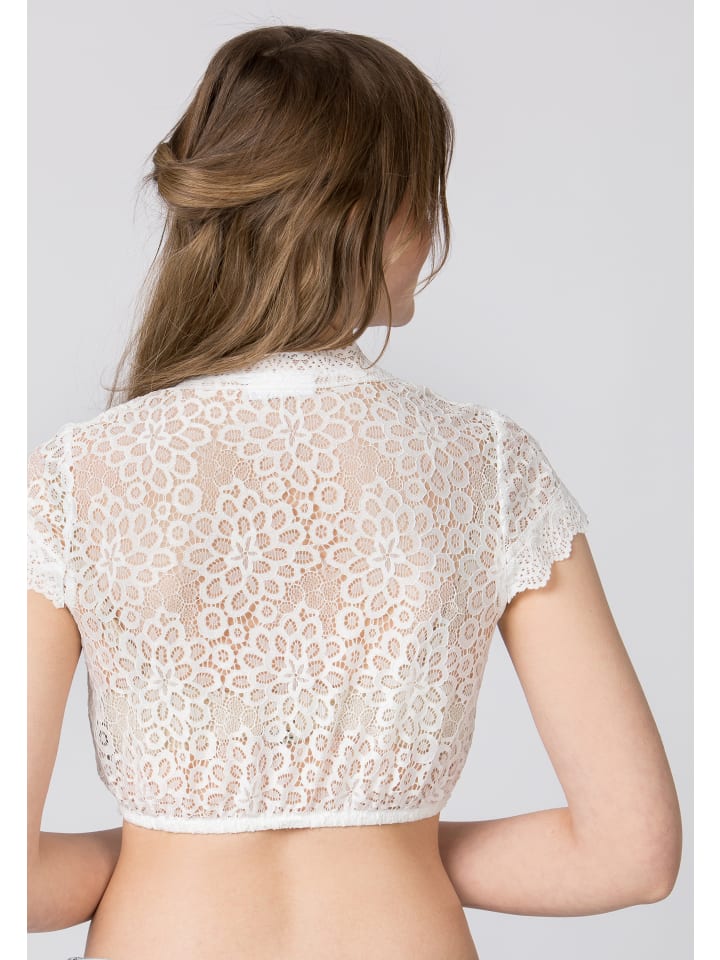 Блузка Kensy дирндль от Stockerpoint кремового цвета. Эта высококачественная женская блузка очаровывает множеством очаровательных деталей и является одной из наших абсолютных фаворитов. Высококачественное кружево подчеркивает этот прекрасный дизайн. V-образный вырез с фестончатым краем красиво подчеркивает зону декольте. Короткие рукава добавляют дополнительный штрих и идеально дополняют образ.