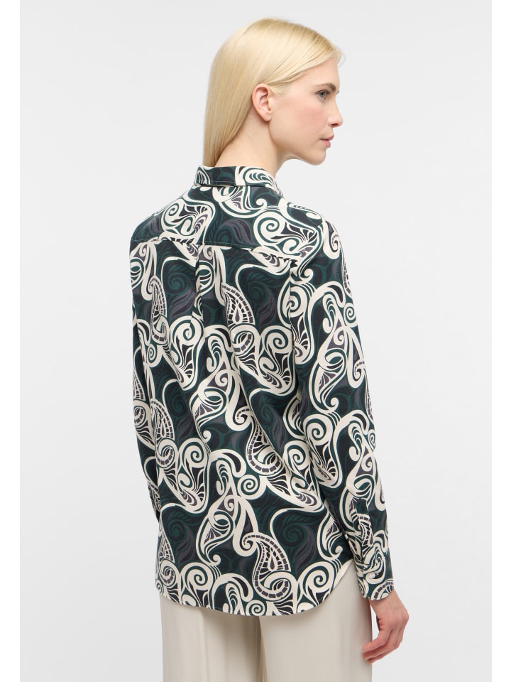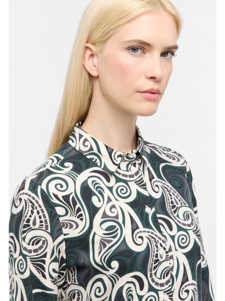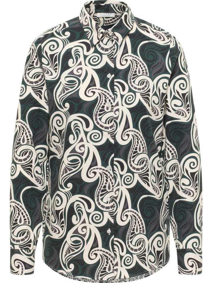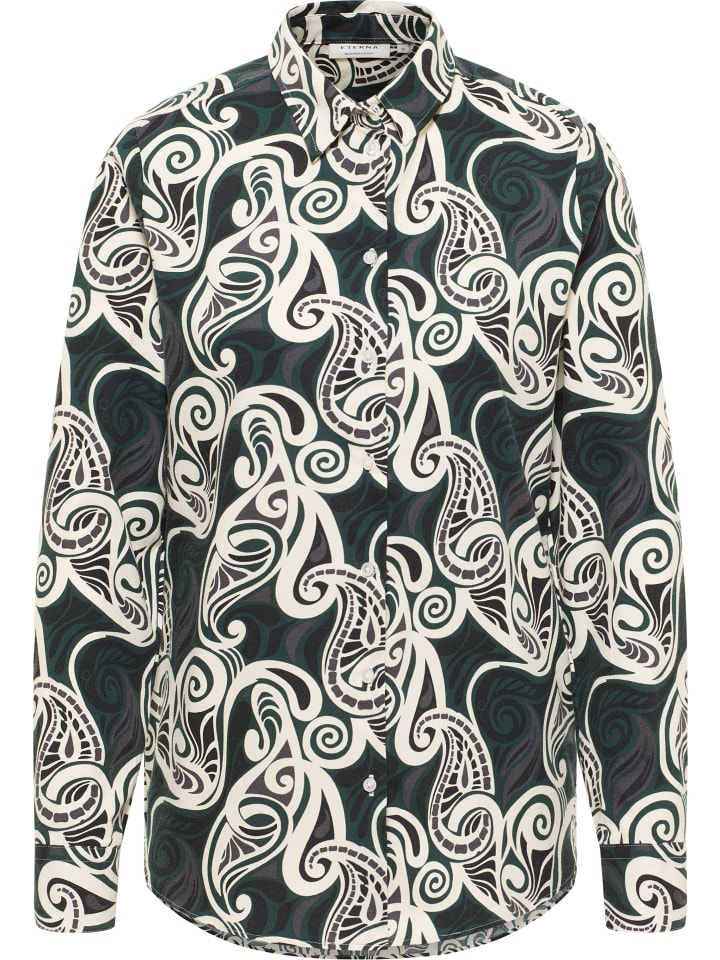 Ощутите стильную элегантность с женской блузкой-рубашкой ETERNA. Эта блузка (длина спинки 72 см) с классическим рубашечным воротником и длинными рукавами идеально подходит для любого случая. Набивная ткань добавляет модный штрих, а отделка EASY IRON обеспечивает легкий уход.