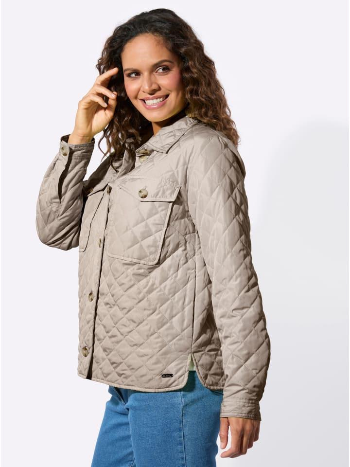 Просто стильно и непринужденно! Эта блузка-куртка со спортивным ромбовидным стежком, рубашечным воротником, нагрудными карманами на пуговицах и планкой на пуговицах. Также имеются незаметные карманы в боковых швах. Длинные рукава с манжетами и застежкой на пуговицах завершают образ. Закругленные боковые разрезы обеспечивают оптимальную свободу движений.