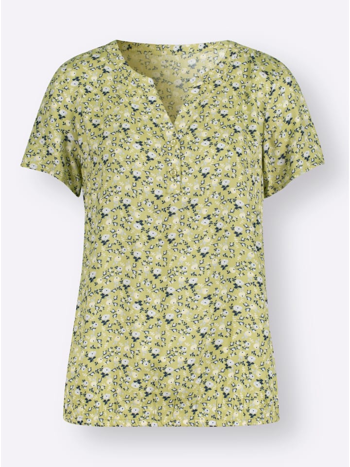Свежие, как весна, цвета и нежный цветочный узор делают эту блузку с принтом особенной. Она имеет свободный крой, круглый вырез, небольшой V-образный вырез и короткую планку с пуговицами. Благодаря эластичному подолу она красиво драпируется и подчеркивает фигуру. Изготовлена из мягкой, струящейся ткани.