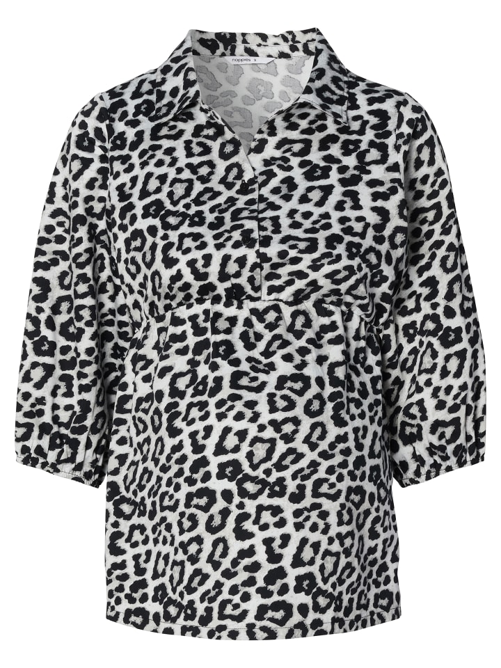 Блузка для кормления Mayte от Noppies Maternity изготовлена из мягкого и приятного на ощупь материала. Эта модель стильно и комфортно будет смотреться не только во время беременности, но и станет любимым предметом гардероба после родов. Блузка украшена леопардовым принтом, красиво декорирована пуговицами и воротником-стойкой. Рукава 3/4 с эластичными манжетами обеспечивают комфортное положение для растущего живота. Блузка для кормления облегчает грудное вскармливание: достаточно просто отогнуть ткань в сторону, чтобы начать кормить малыша. Одним словом, блузка с одними плюсами!