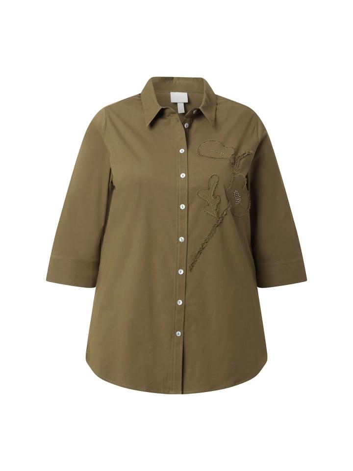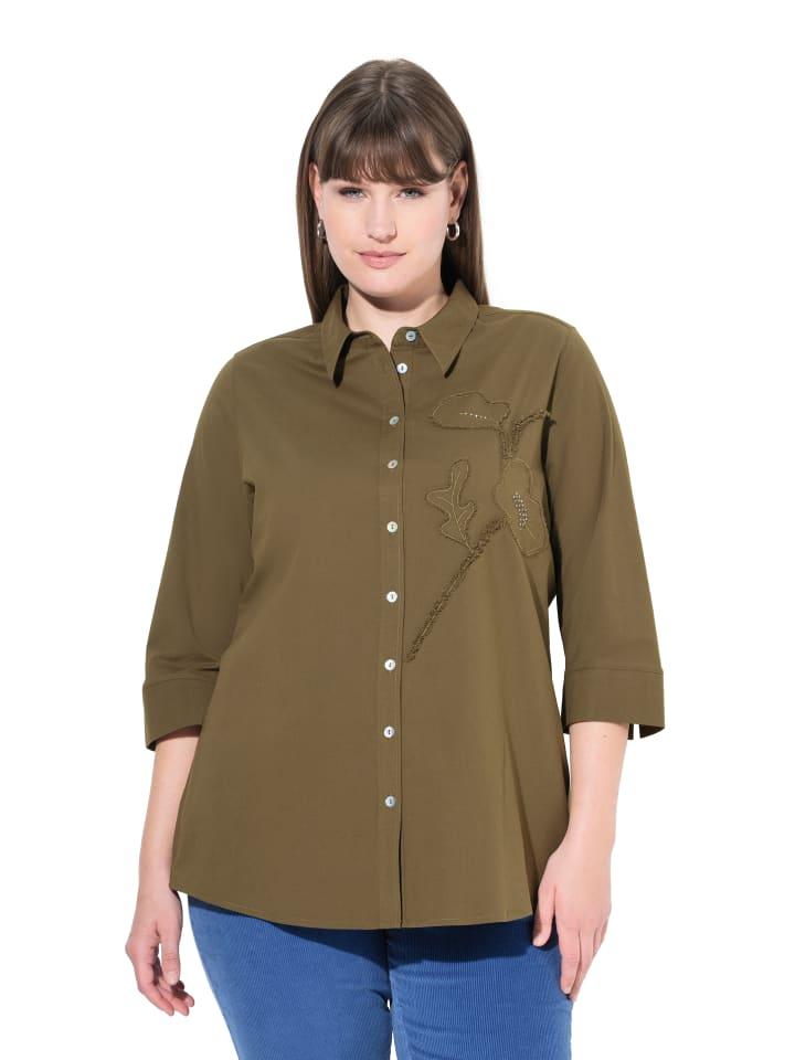 Блузка-рубашка оливкового цвета Ulla Popken