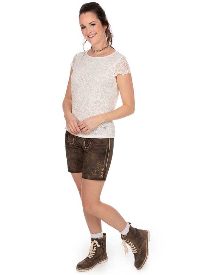 Традиционная блузка "DIVERIA" от Spieth & Wensky сочетает в себе традиционную элегантность и современный стиль. Она представлена в различных привлекательных цветах, включая синий, фиолетовый, кремовый, черный и зеленый. Цветочный кружевной узор придает блузке женственность и романтику, делая ее идеальным вариантом для традиционных случаев.