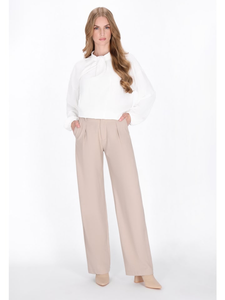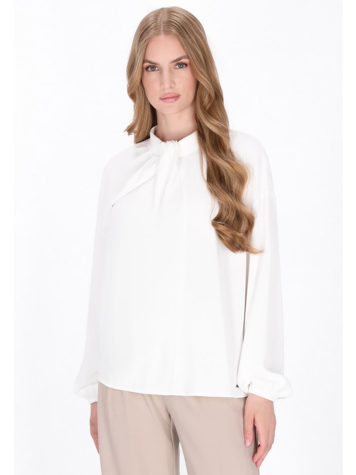 - Блузка свободного кроя с круглым вырезом и длинными рукавами-бишоп