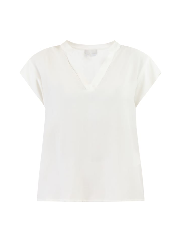 Легкая вискозная блузка от RISA - идеальный выбор для лета. Непринужденный базовый крой с короткими рукавами и V-образным вырезом с небольшим воротником-стойкой дополнит любой гардероб и всегда будет выглядеть безупречно. Сочетайте топ с брюками или юбками для повседневного или вечернего образа - в зависимости от аксессуаров, он подойдет для любого случая: от офиса до оперы.