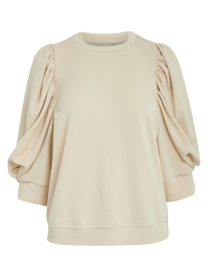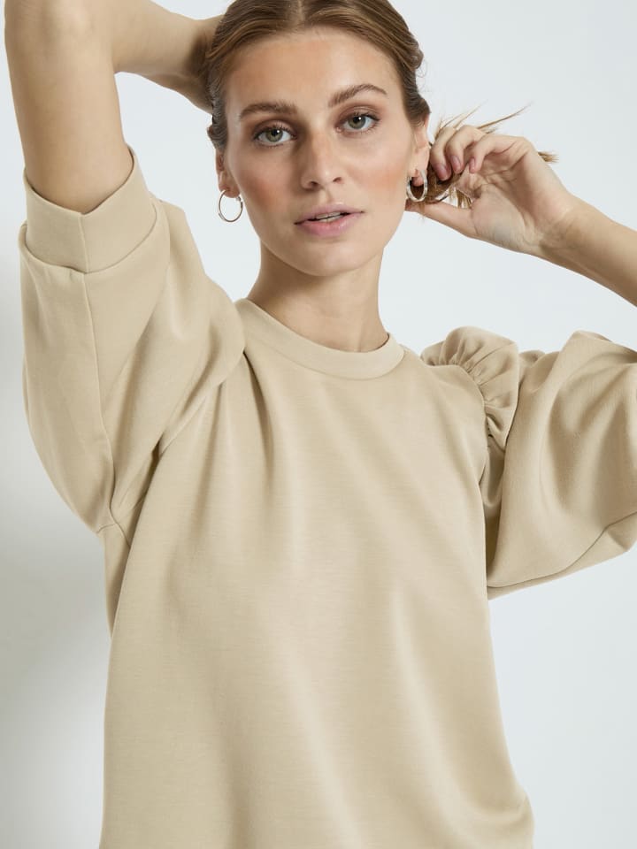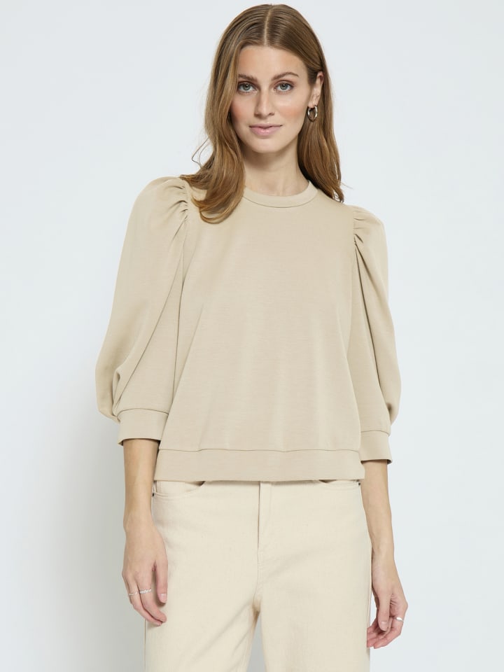 Блузка PCDicette выполнена из мягкой модальной смеси, что обеспечивает ей комфортную посадку и подчеркивает фигуру. Блузка имеет рукава-буфы три четверти, круглый вырез горловины и широкие нижние края на корпусе и манжетах.