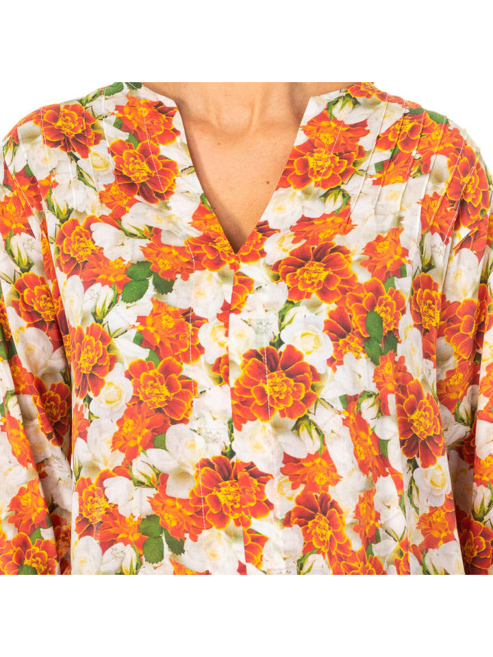 Эта женская блузка с рукавами 3/4, круглым вырезом и V-образным вырезом - элегантный и универсальный предмет одежды, идеально подходящий для любого случая. Рукава 3/4 отличаются легким кроем и классическим круглым вырезом. V-образный вырез добавляет тонкую и стильную деталь, улучшая общий вид.