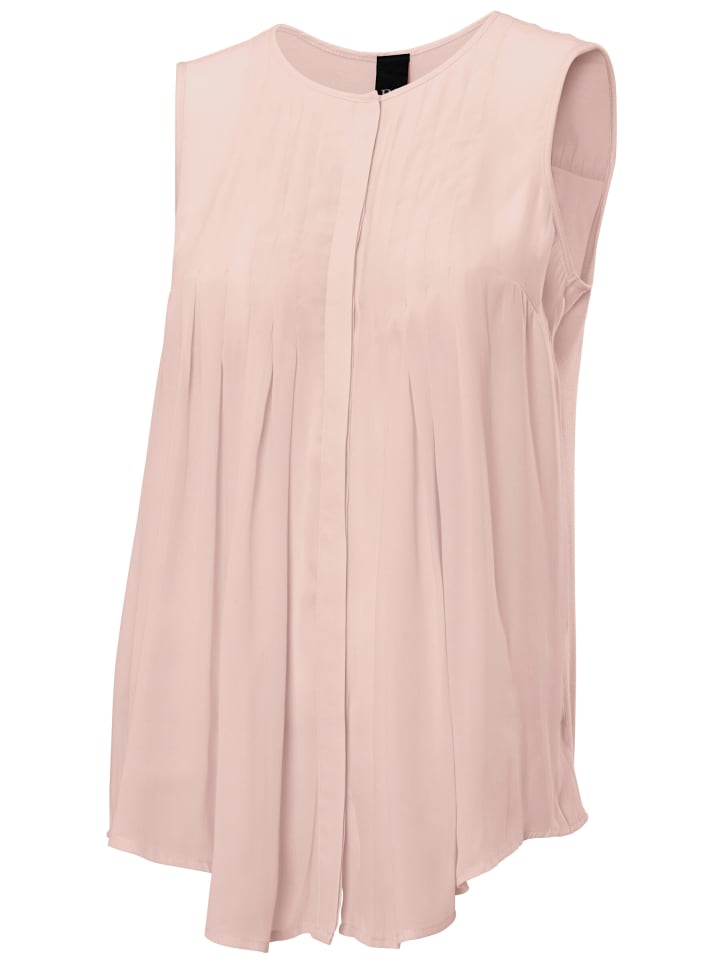 Рубашка-блузка: Модный повседневный образ с плиссированными деталями. Высококачественное сочетание материалов: ткань спереди, трикотаж сзади. Облегающий фасон без рукавов с круглым вырезом.