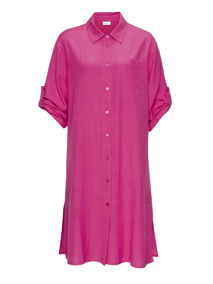 Длинная блузка от Lascana. Классический рубашечный воротник, застежка на пуговицы по всей длине и нагрудный карман. Рукава три четверти с застежкой на пуговицы. Прямой подол с боковыми разрезами. Свободный крой, подчеркивающий фигуру. Отлично сочетается с леггинсами и узкими джинсами. Мягкая ткань.