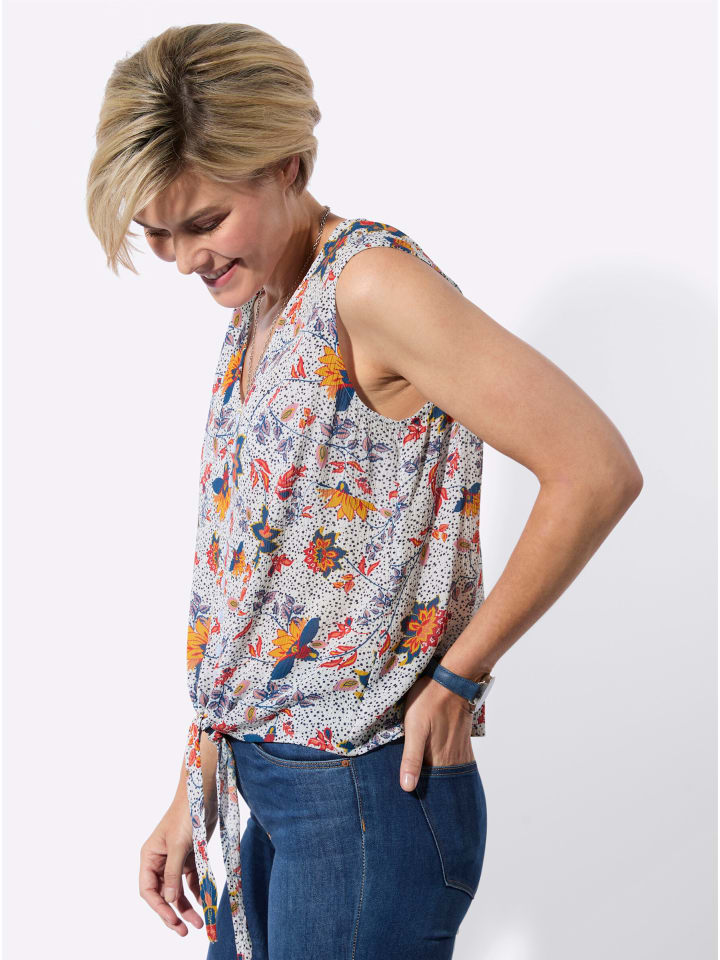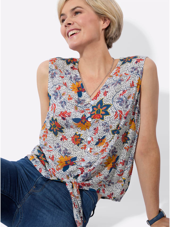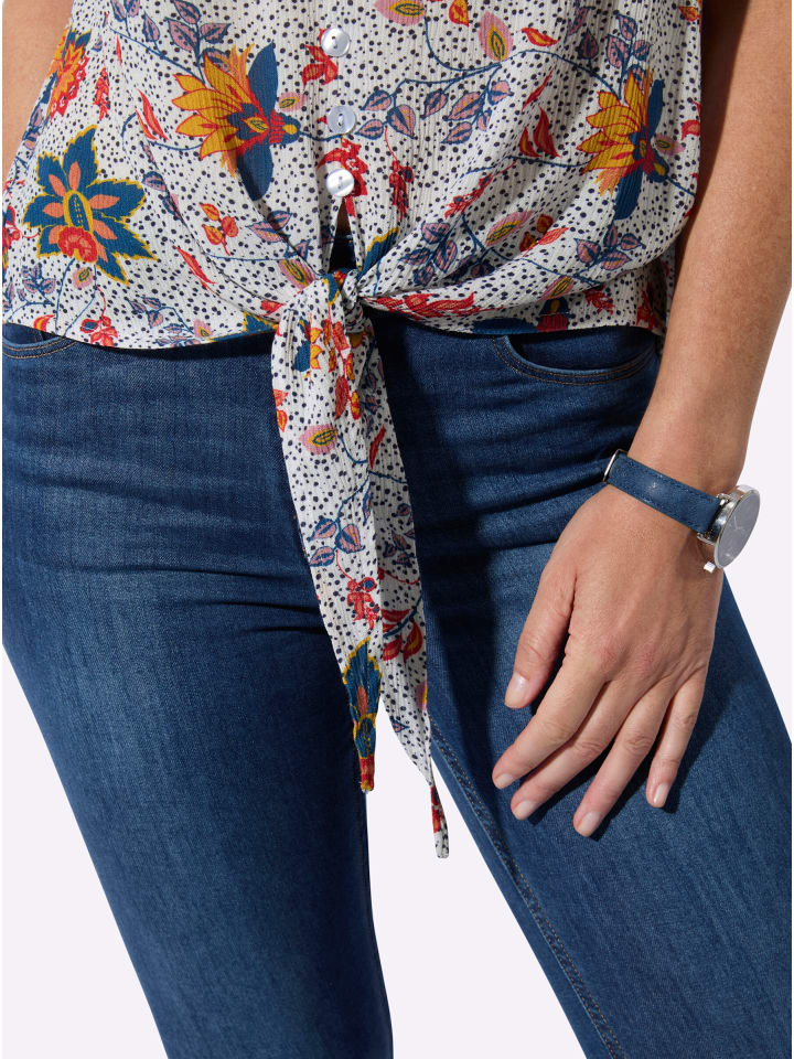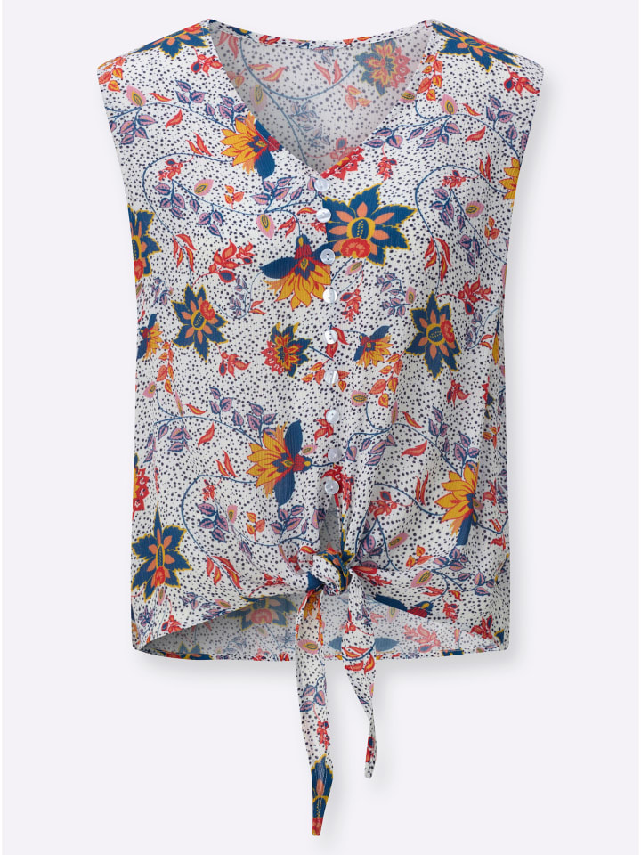 В привлекательном цветочном дизайне: воздушная блузка из ткани с легкой текстурой. С имитацией планки с пуговицами и завязанным низом. Приятная для кожи и дышащая, изготовлена из чистой вискозы (ECOVERO).