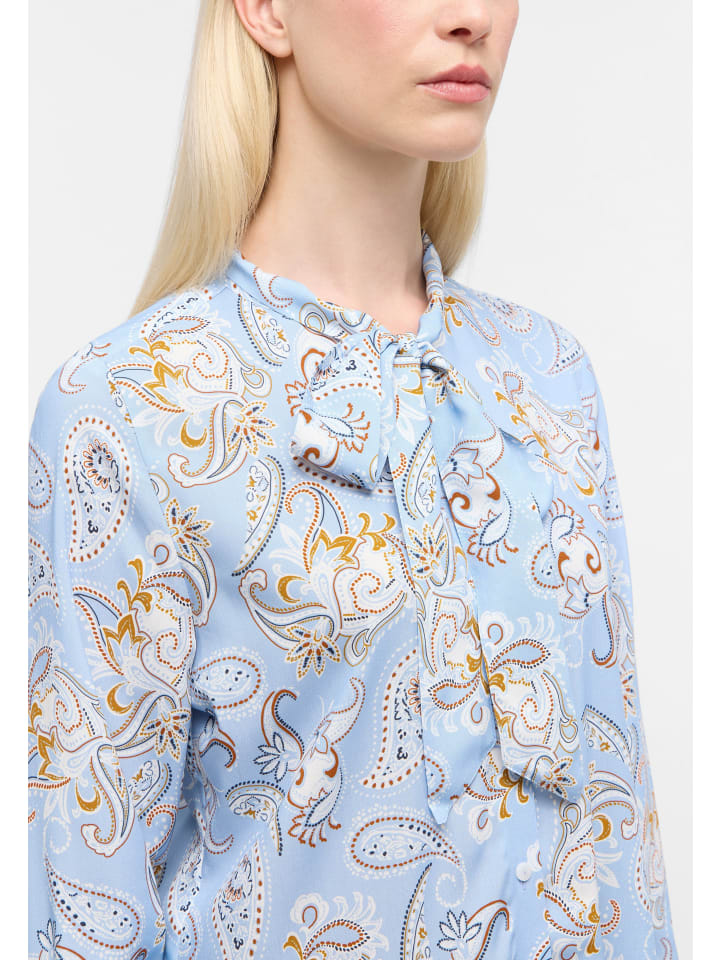 Откройте для себя элегантную женскую блузку от ETERNA стильного прямого кроя. Эта блузка впечатляет своим принтом, который добавит современности любому образу. Длинные рукава и классический воротник с завязкой обеспечивают разнообразные возможности для создания стильных образов.