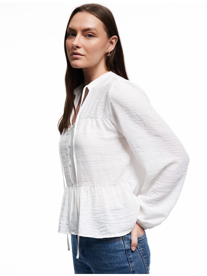 Эта элегантная блузка сочетает в себе богемную элегантность и женственные акценты. Длинные рукава-фонарики и воротник-стойка создают стильный образ, а втачные детали добавляют женственности. Легкая, удобная конструкция подойдет как для повседневных нарядов, так и для офисных образов, сочетая в себе стиль и комфорт.