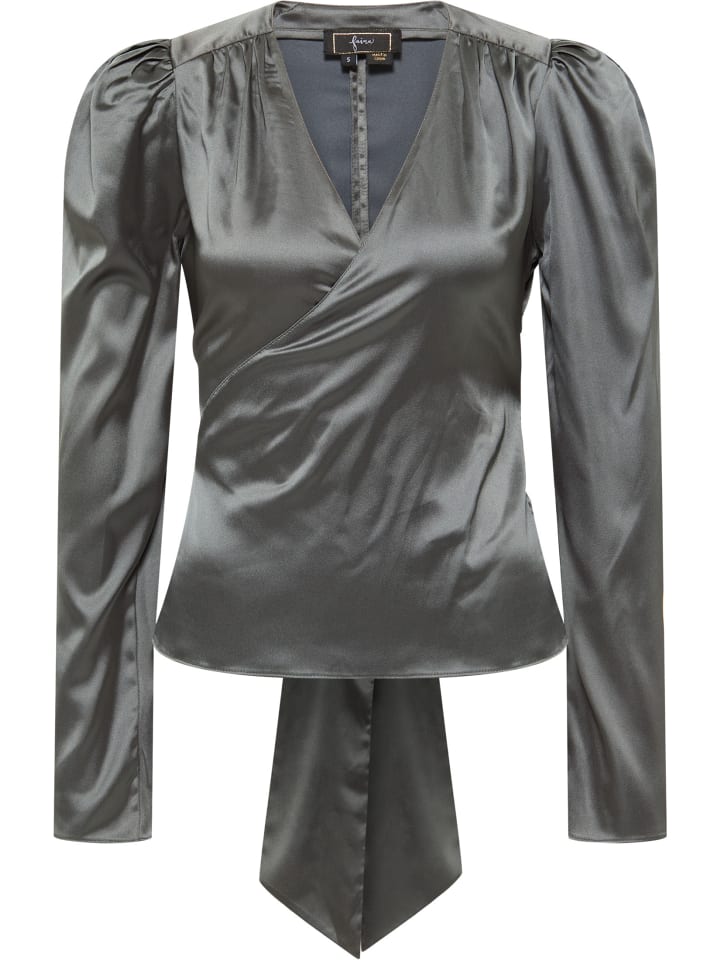 Женственная элегантность и шелковистость - вот что делает эту блузку от Faina такой очаровательной. Скроенная на запах, выполненная из мерцающего, мягкого атласа с широким поясом, она впечатляет своим игривым, но соблазнительным видом. Изящно присборенные и укрепленные плечи создают изящный контраст, еще больше подчеркивая вашу уверенную, полную женственность. Сочетайте ее с облегающими брюками или облегающими юбками, чтобы идеально продемонстрировать эту блузку.