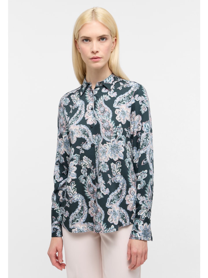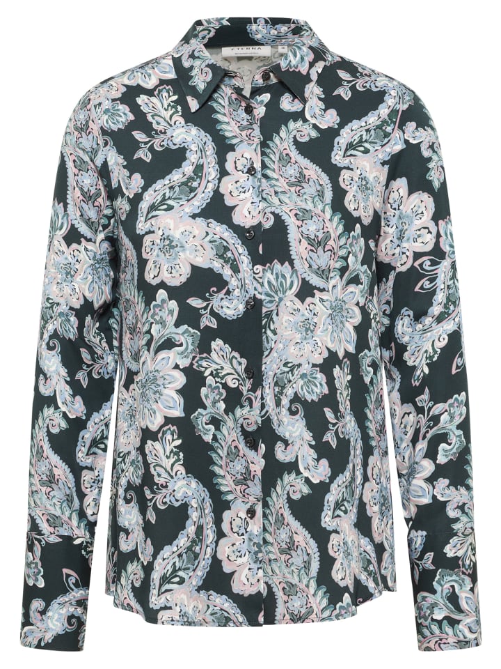 Откройте для себя женскую блузку с воротником-стойкой ETERNA, которая сочетает в себе элегантность и комфорт.