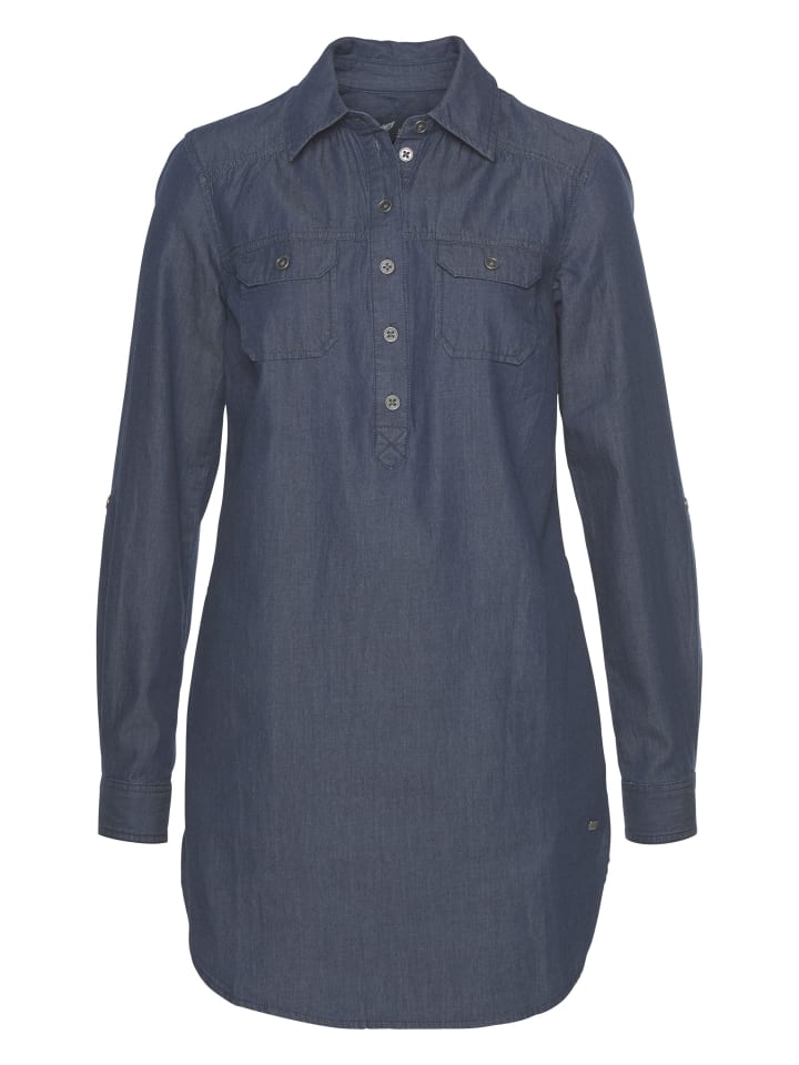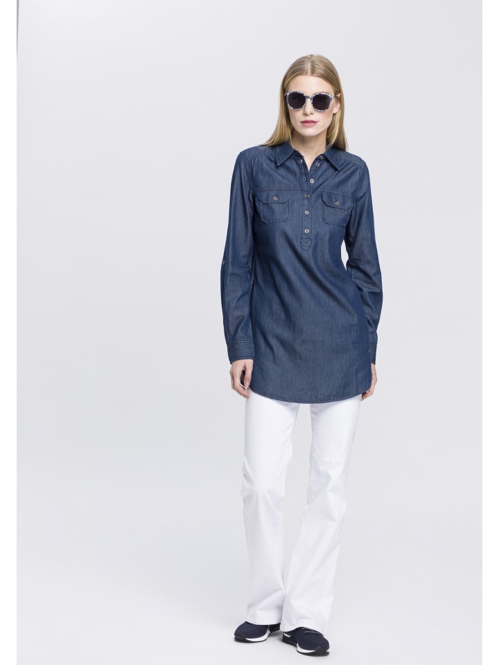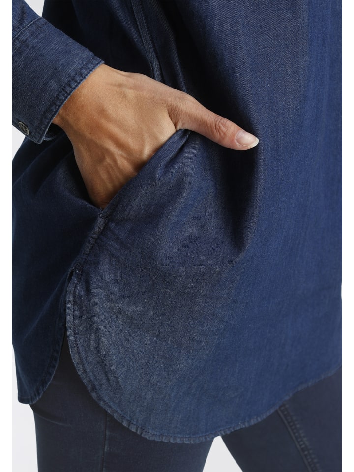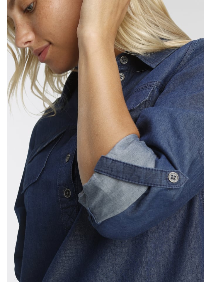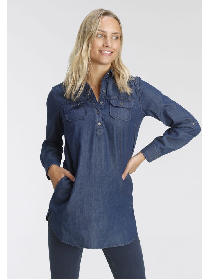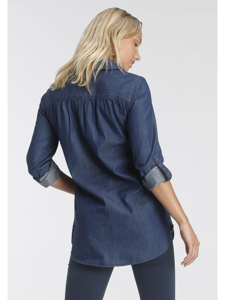 Универсальная женская джинсовая блузка из Аризоны. Длинный, подчеркивающий фигуру фасон. Идеально подходит для повседневных образов. Благодаря плетению, за этой блузкой легко ухаживать.