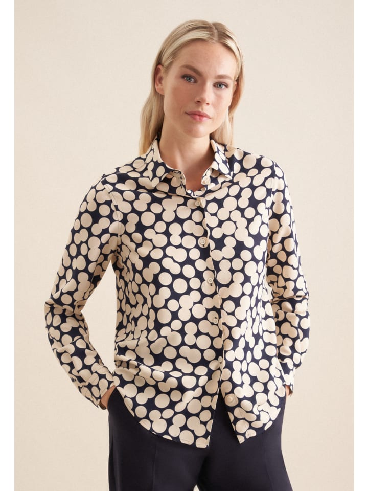 Блузка-рубашка обычной длины темно-синего цвета Seidensticker