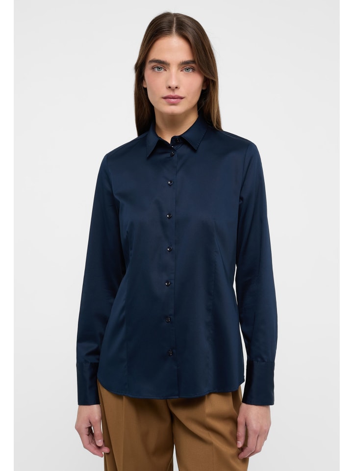 Гладкая и слегка мерцающая - наша легкая в уходе атласная рубашка впечатляет своей сдержанной элегантностью. Рубашечное воротничок и мягкий на ощупь хлопковый материал (95% хлопок, 5% эластан, атлас) делают эту блузку длиной по спинке 66 см абсолютным must-have для женственных деловых образов и стильных мероприятий. Эта блузка-рубашка REGULAR FIT впечатляет своим классическим, приталенным и облегающим кроем. Силуэт подчеркнут вытачками на талии. Суперэластичный материал гарантирует свободу движений. Закажите эту классическую модель уже сегодня в интернет-магазине ETERNA.