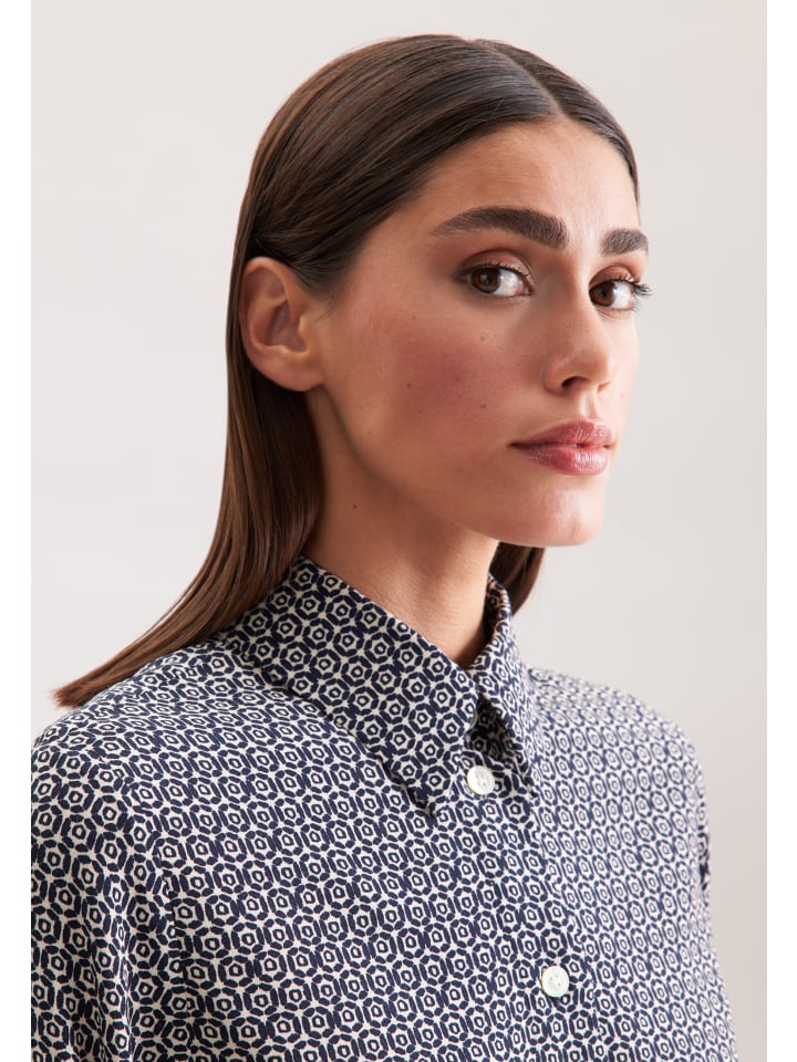 Блузка-рубашка обычной длины темно-синего цвета Seidensticker