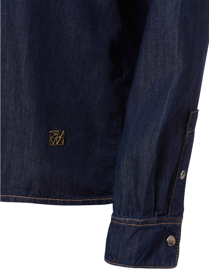 Блузка-рубашка MMNatalie от Mos Mosh отличается современным джинсовым стилем с контрастными швами и меланжевыми пуговицами.
