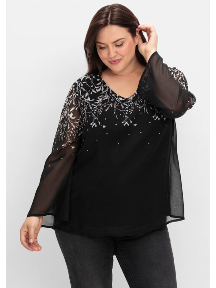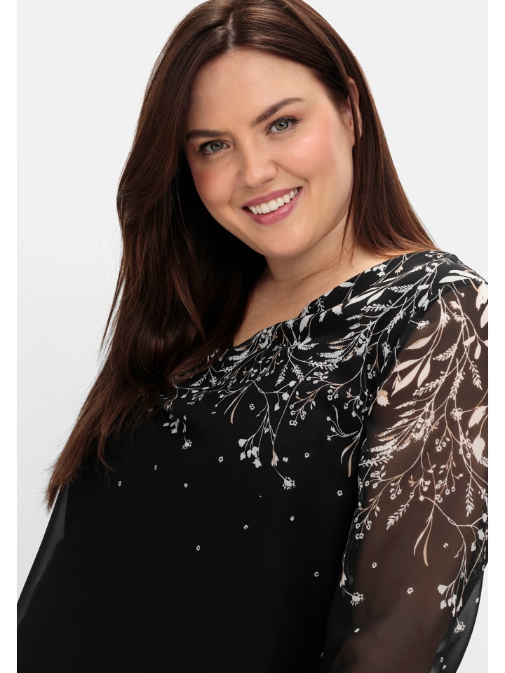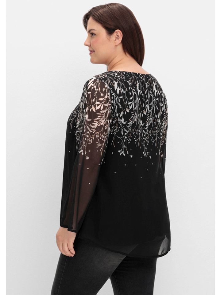 Шифоновая блузка в черно-белый узор sheego