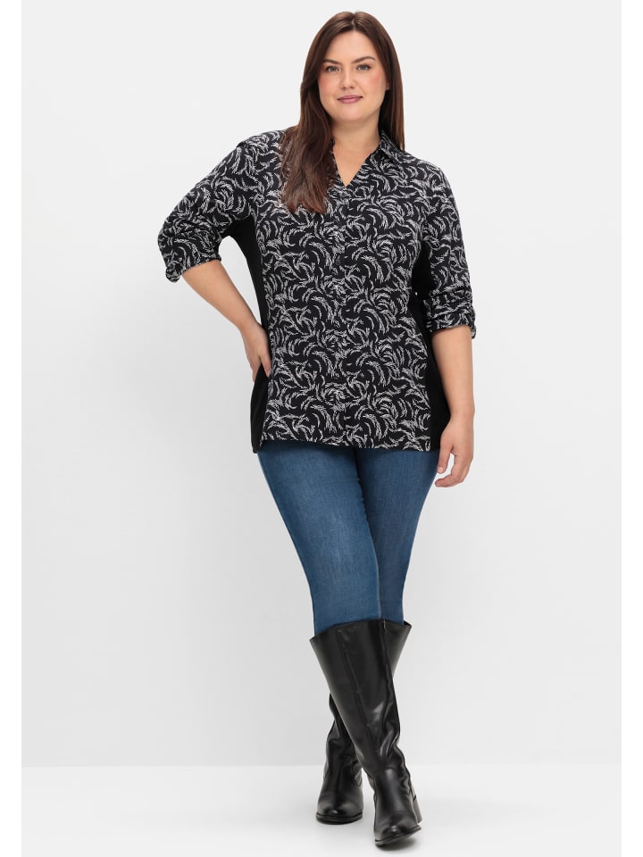 Блузка-рубашка в черно-белый узор sheego