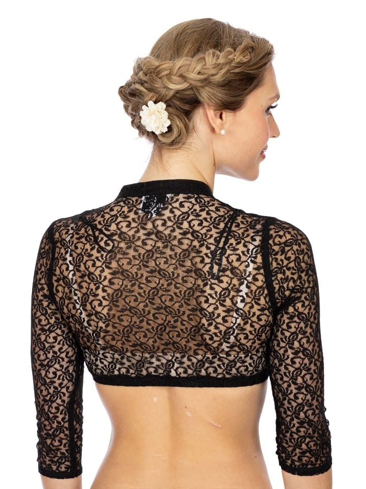 Восхитительный акцент для вечернего образа. Блузка-дирндль Dilana-Linda от Marjo черного цвета. У нее приталенные рукава длиной ¾ и глубокий V-образный вырез. Прозрачный крой украшен узором из переплетенных цветов. Воротник прямой, не слишком высокий на спине. Эта нейтральная блузка придаст вашему любимому дирндлю новый вид. Черный цвет сочетается со многими цветами и идеально подойдет для вашей следующей вечеринки.