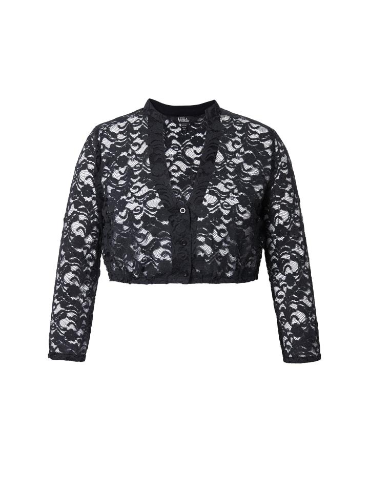 Блузка-дирндль из хлопкового кружева - идеально подходит в качестве базового слоя в сочетающемся цвете. V-образный вырез, планка на пуговицах, рукава 3/4. Эластичный подол.