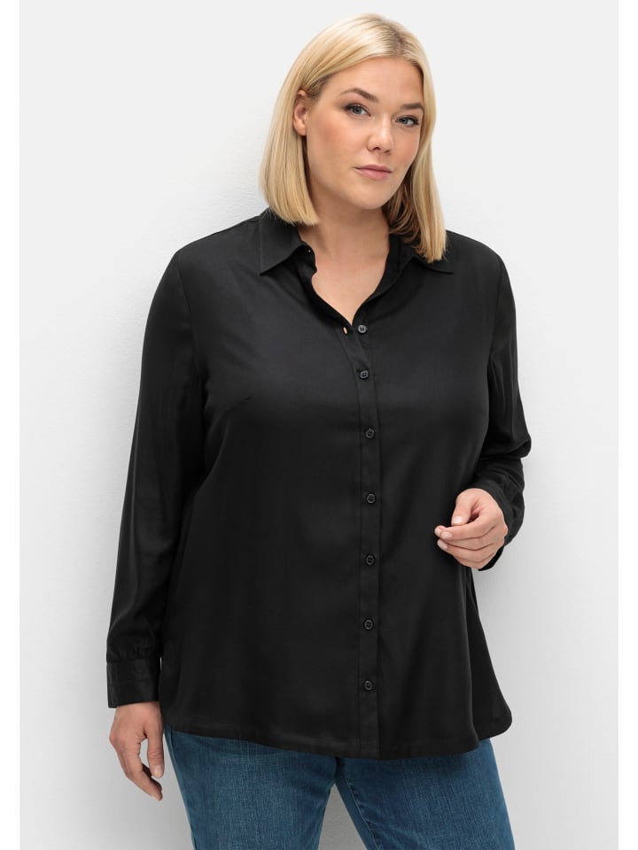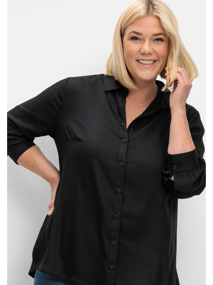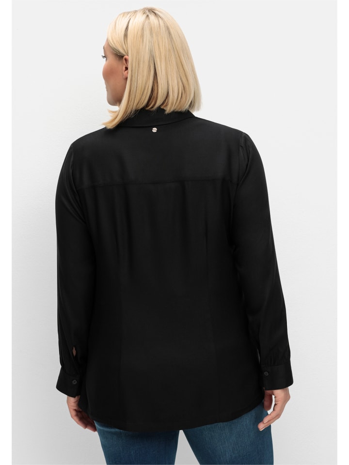 Блузка из твила. Блузка имеет классический крой с воротником, планкой на пуговицах и рукавами с манжетами. Боковые разрезы по подолу обеспечивают свободу движений в области бедер, а кокетка сзади обеспечивает оптимальную посадку по фигуре.