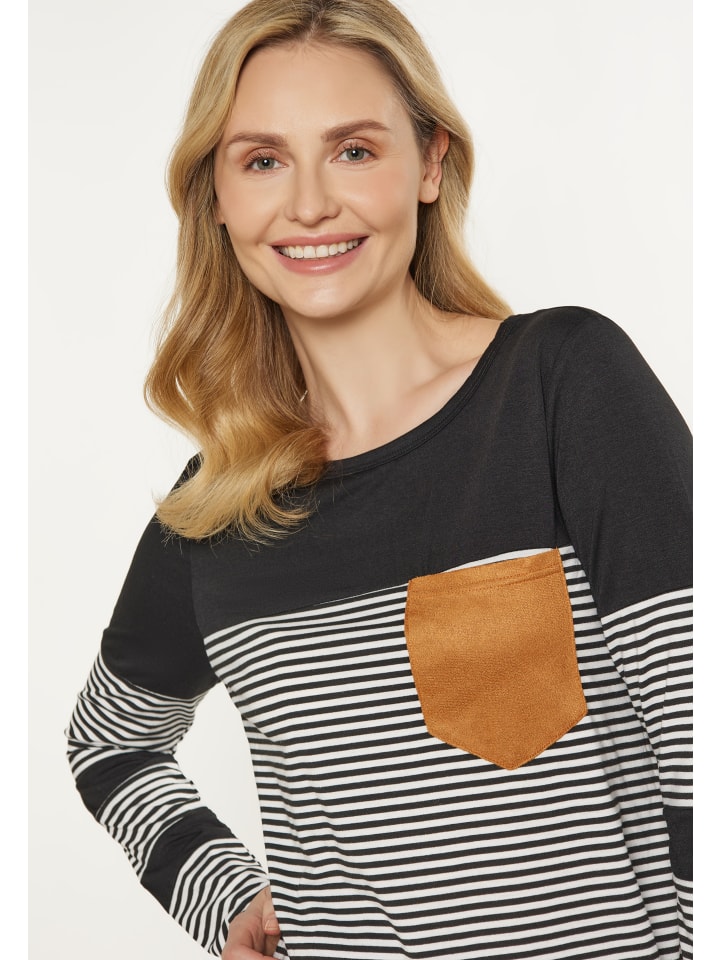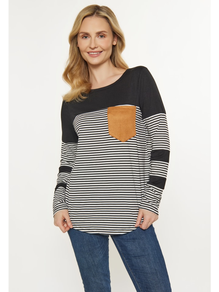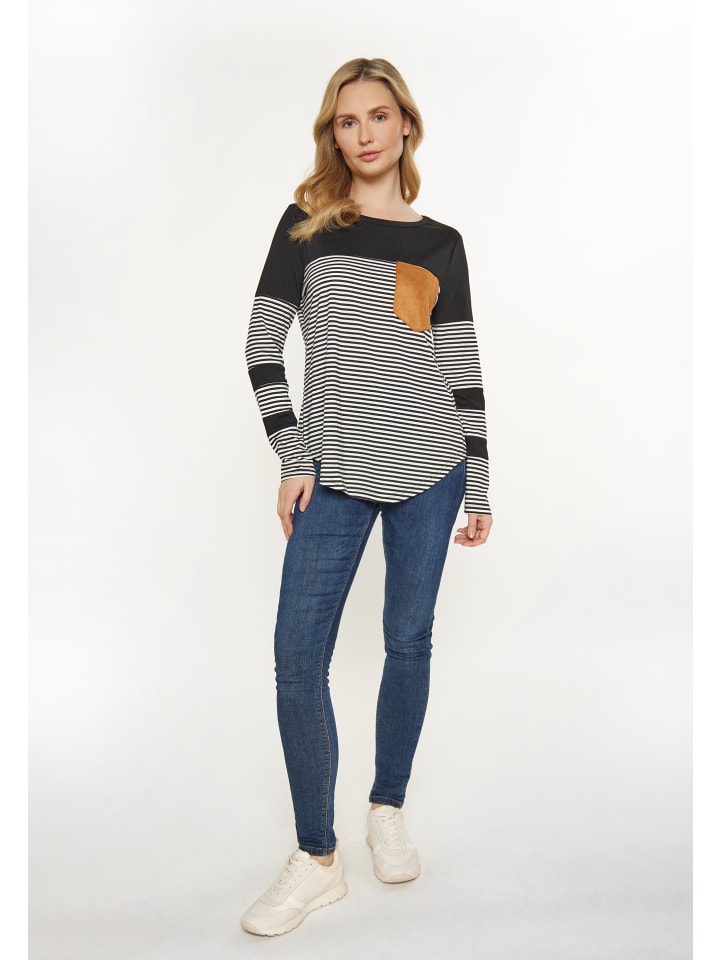 Эта стильная блузка с длинным рукавом - отличный выбор на каждый день. Она имеет классический крой, круглый вырез и элегантный полосатый узор, который добавляет нотку шика. Нагрудный карман добавляет практичности, а трикотаж обеспечивает комфорт. Эта универсальная блузка идеально подходит для повседневных выходов в свет, став незаменимым дополнением к модным нарядам. Она входит в коллекцию Fashion Look.