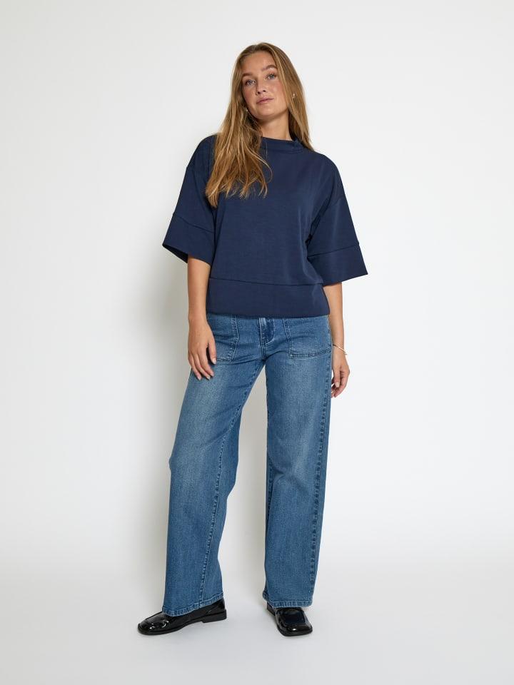 Блузка PCDicette изготовлена из смеси модала, что делает ее невероятно мягкой и комфортной. Блузка имеет V-образный вырез, короткие рукава и слегка свободный крой.