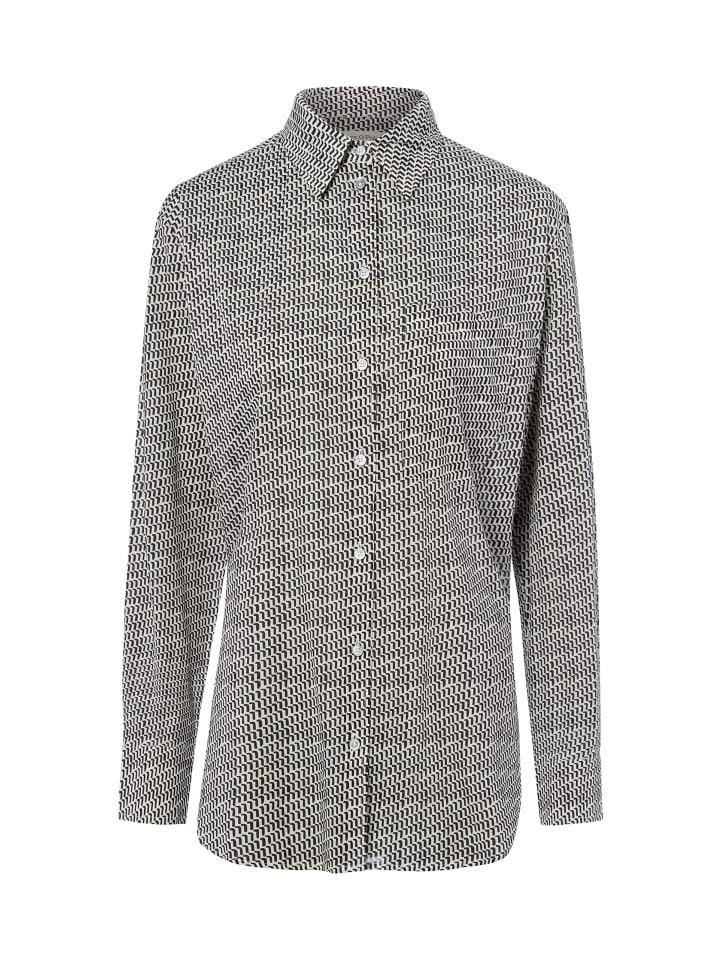 Сочетание свободного кроя и закругленного асимметричного подола определяет повседневный характер блузки-рубашки Marc O'Polo.
