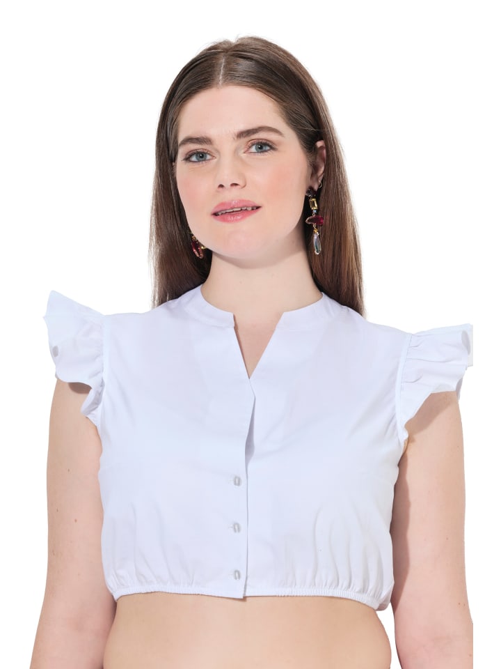 Дирндль с рукавами-оборками. Идеально подходит для многослойного образа: воротник-стойка, V-образный вырез и планка с пуговицами. Эластичный низ.