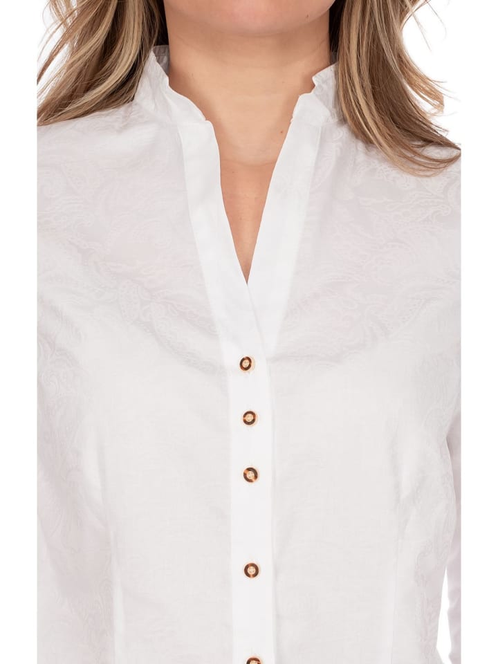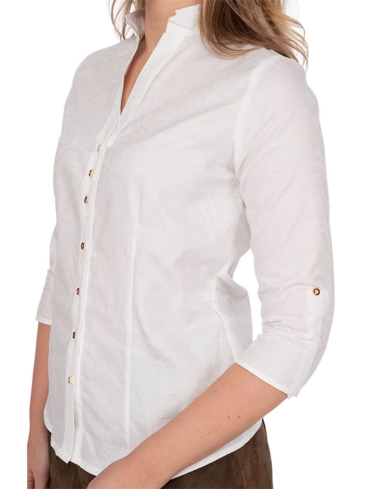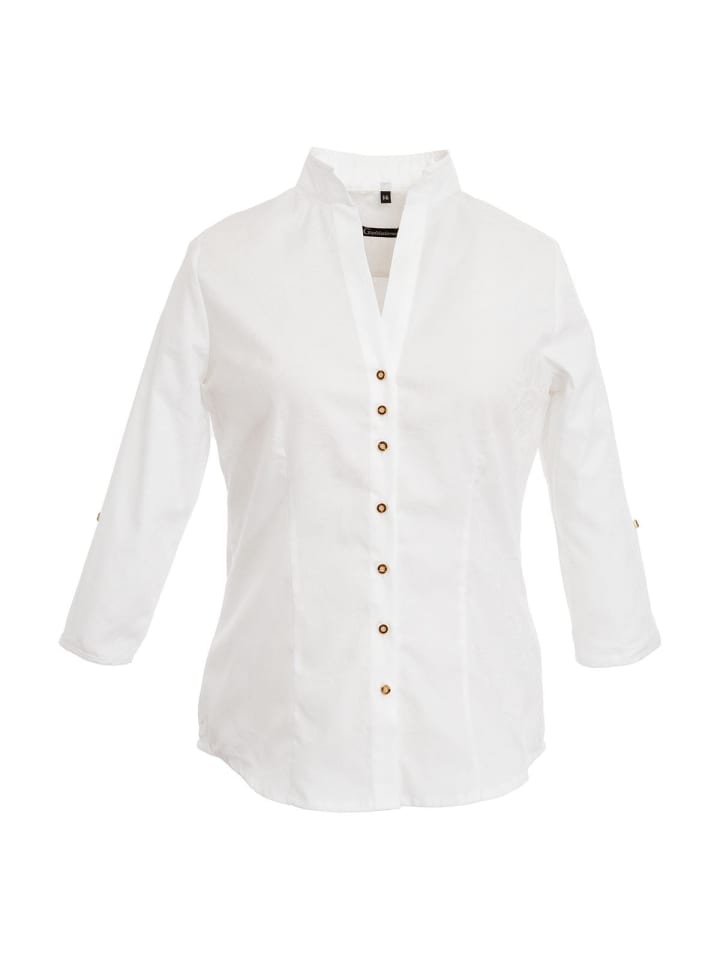 Блузка 450000-4242 от OS-Trachten - универсальный и вневременной предмет одежды для традиционного стиля. Ослепительно белая блузка воплощает классическую элегантность и традиции. Рукава три четверти создают привлекательный крой, который не только современен, но и достаточно универсален для сочетания с другими вещами.
