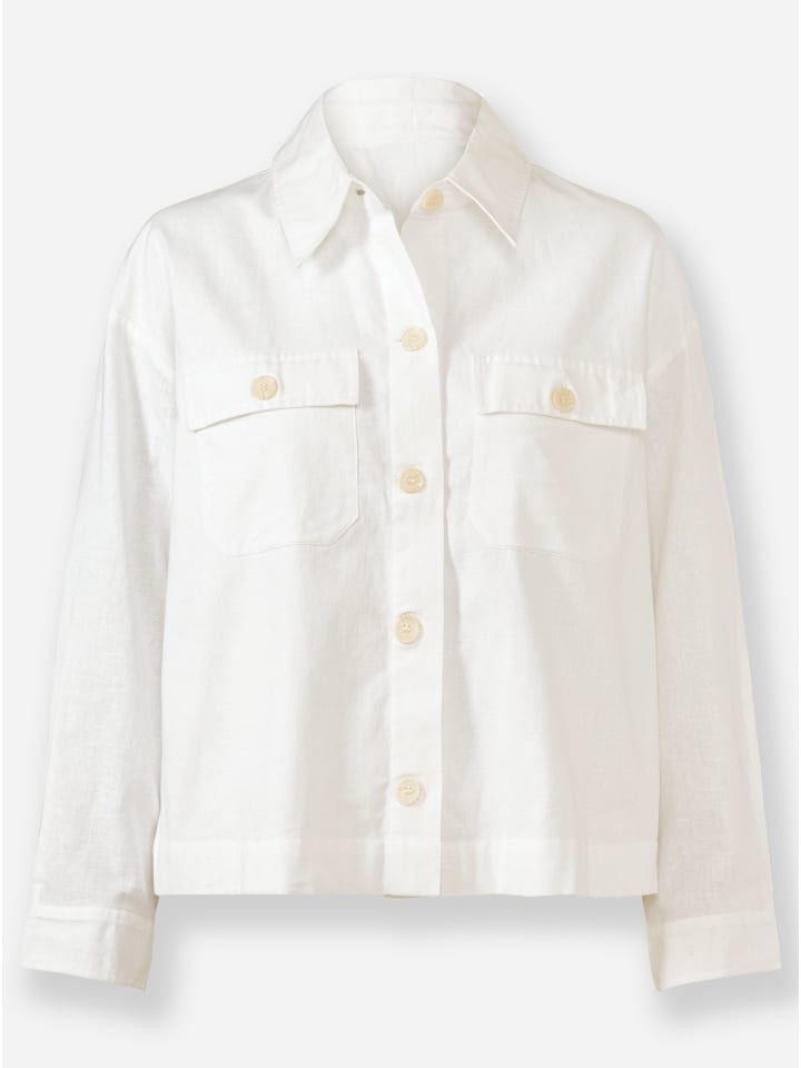Блузка-пиджак из комфортной смеси хлопка и льна, прямого кроя. С рубашечным воротником, накладными нагрудными карманами и планкой на пуговицах. Длинные рукава с манжетами на пуговицах. Соответствует инициативе «Сделано в Африке» (Colloton made in Africa).