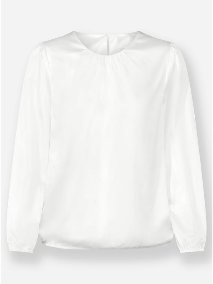 Роскошная мерцающая атласная блузка с эффектными сборками на круглом вырезе и плечах. Застежка на петлю-пуговицу и разрез сзади. Эластичные манжеты на длинных рукавах и подоле создают красивую драпировку. Изготовлено из переработанного полиэстера.
